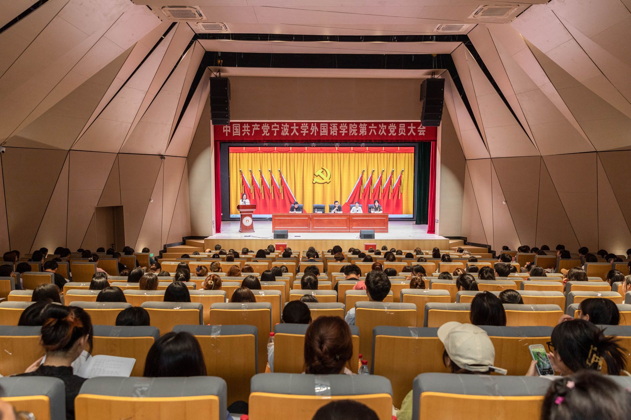 大会在庄严的国歌声中拉开序幕。学院党委书记翁华星代表第五届委员会向大会作题为《凝心聚力共奋进 高质量党建引领学院高质量内涵式发展》的工作报告。报告全面回顾2019年以来学院在党的建设、学科建设、人才培养、社会服务等方面取得的显著成绩,深刻分析学院发展中存在的短板和不足,并提出未来五年的奋斗目标及主要任务,提出要以立德树人为根本,以学科建设为龙头,以师资队伍建设为核心,以改革创新为动力,实施聚贤强师人才引育工程、“外语+高质量”人才培养工程、对外文化传播创新工程三大战略工程,全力推进学院高质量内涵式发展。