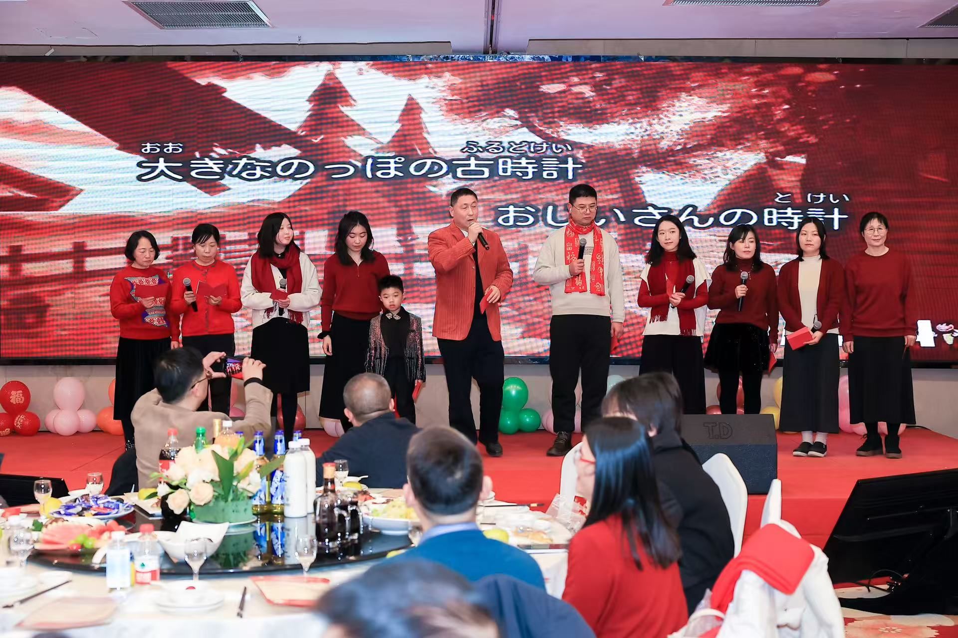 校友会承办。由96届英语系校友胡英杰、学工办施嘉婷、学工办景颢、德语系王婉赢主持。外院在职教职工、离退休教师和校友会的众多成员齐聚一堂,共迎新年。