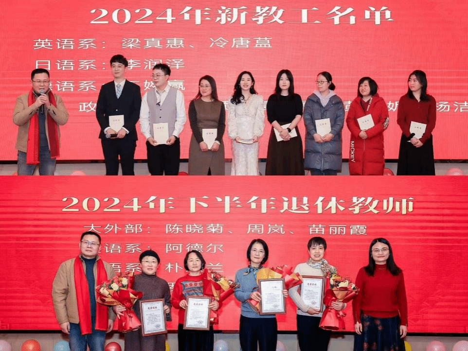 除了文艺表演,晚会还举办了2024年下半年退休教师荣休仪式以及2024年新教工入职仪式,学院以隆重而温馨的方式,向退休教师们多年来为学院发展所做出的贡献表达了崇高敬意和诚挚感谢,也让新教师们感受到了学院大家庭的温暖与关怀,体现了高清无码