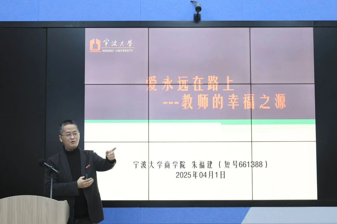 朱福建老师向在座老师作“爱永远在路上——教师的幸福之源”主题分享,讲述了三十年教学间感悟到的十二个幸福之源,包括与学生的关系、学生毕业后的成就、团队管理幸福指数、付出与分享等。朱老师幽默风趣又实在真诚的演讲方式让大家感受到了他在教学过程中对学生深深的爱,和对教师身份的自豪感。一件件可能不起眼但印象深刻的小故事令人动容,蕴含着朱老师赤诚的教育初心,让听众仿佛经历了一场温暖而深刻的精神洗礼。之后,高清无码