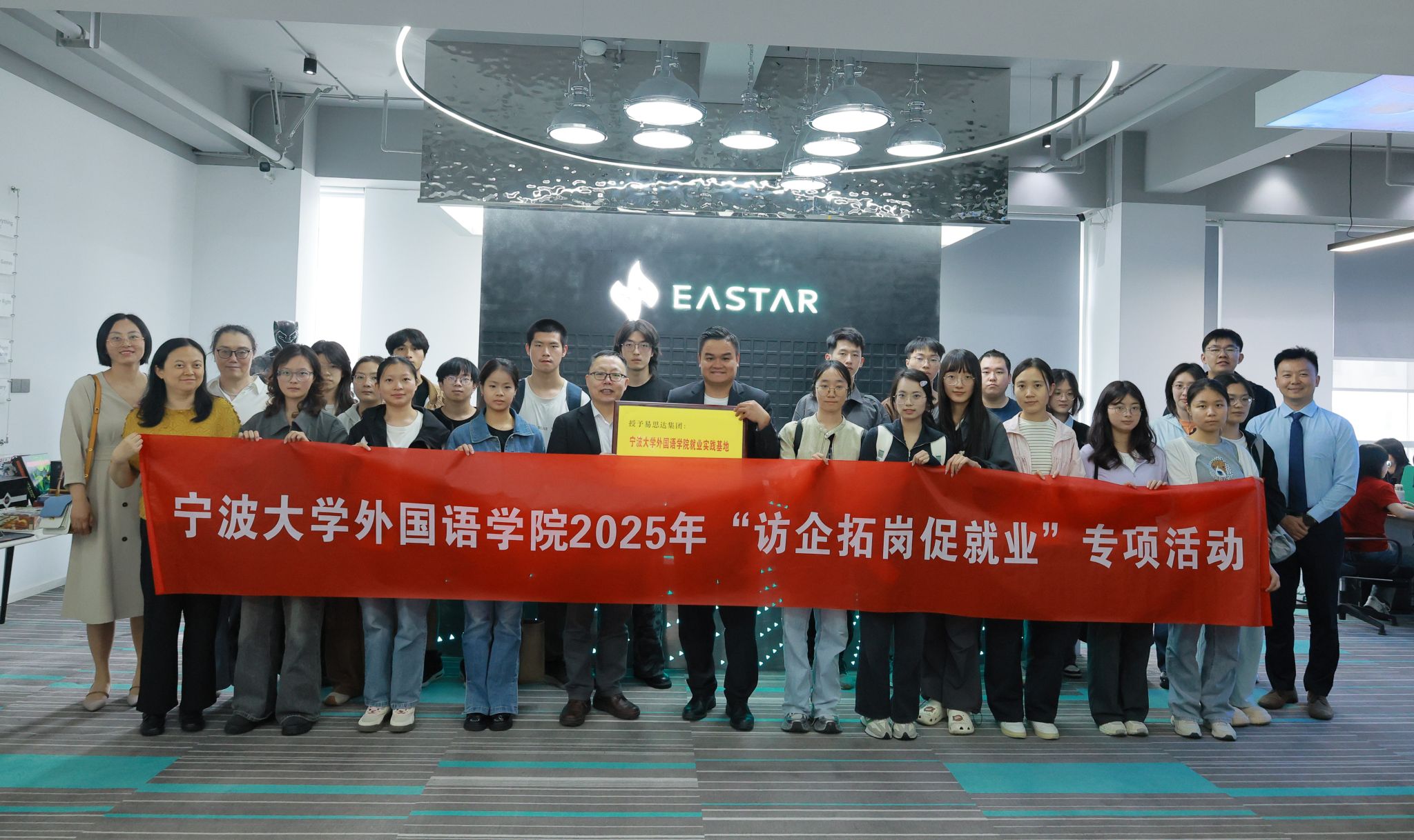 副院长张陟、德语系主任张芸、德语系副主任蔡玳燕、德语系副主任、社会服务办主任任春静、就业辅导员檀学敏、学生代表等30余人赴易思达集团开展“访企拓岗促就业”专项活动。易思达集团CEO杜伟伟、人事负责人郭辛、人事经理王伯涛等人热情接待。双方签署战略合作协议,并进行实习基地授牌仪式。