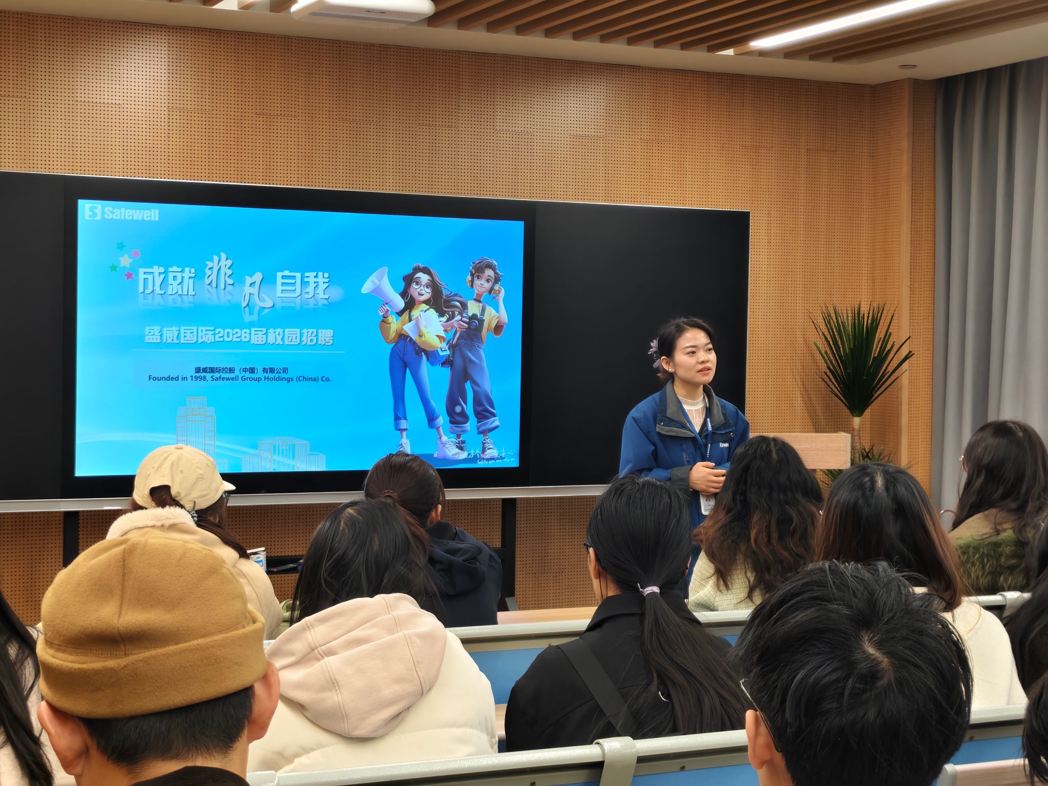 在盛威亚太总部园区,师生一行首先参观了保险箱历史博物馆与盛威文化展厅,深入了解这家跨国企业从传统制造到通信、大健康、国际贸易等多元业务的发展历程,感受以“感恩尊重”为特色的企业氛围。企业代表重点介绍了盛威“人才第一、以人为本”的经营理念,以及为员工营造的良好发展环境,让师生切身感受到企业“创造安全,感受安心”的核心价值观。在产品展示中心,琳琅满目的样品也让同学们对公司创新研发与个性化定制的综合实力有了更直观和深刻地认识。