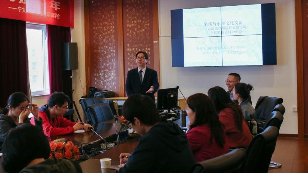 “李达三讲堂”(第四十五讲),于李达三外语楼422会议室做了题为“笔谈与东亚文化交流-以清代首届驻日公使馆员笔谈资料为中心”的学术讲座。高清无码