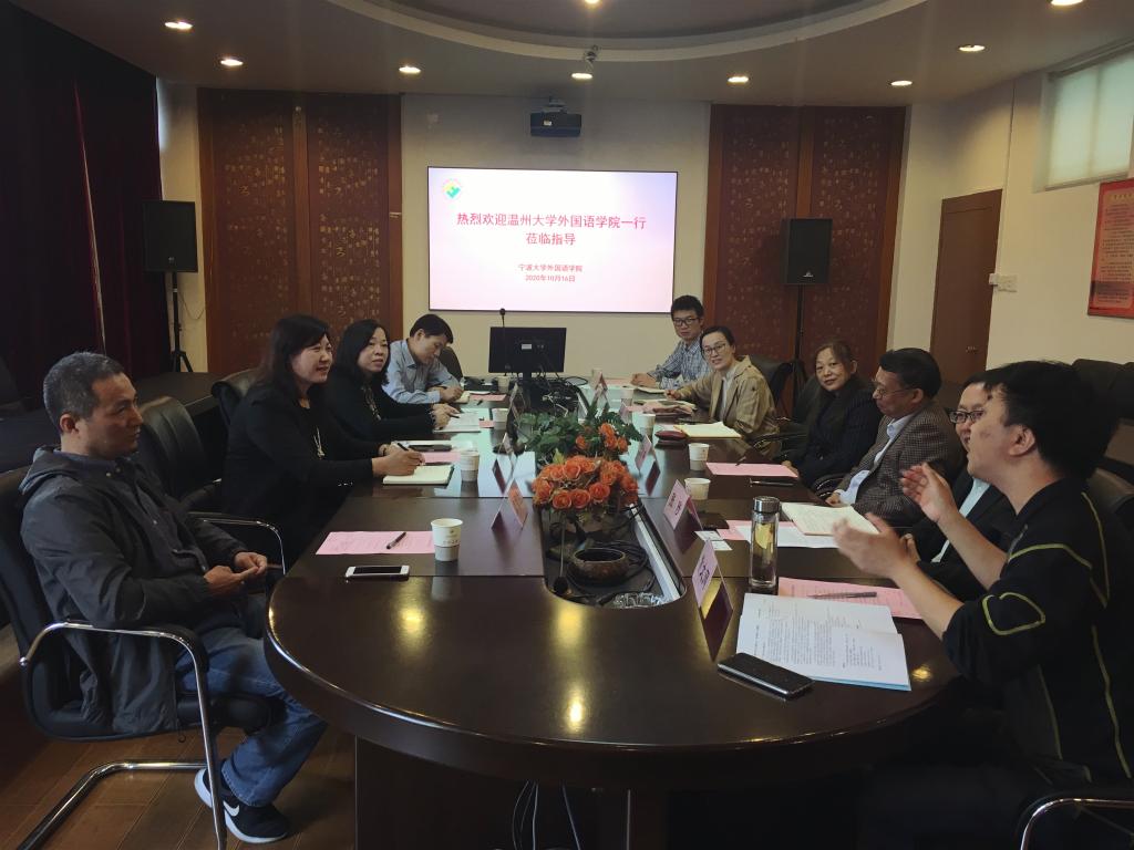 座谈会上,高清无码 负责人对温州大学高清无码 党委书记姜海燕一行的到来表示欢迎,并介绍了学院基本情况。姜海燕书记对宁大外院的接待表示感谢,对宁大外院取得的发展成绩表示赞赏。双方就翻译硕士点及外国语言文学一级硕士点申报与人才培养、外语学科特色与优势以及小语种专业建设等方面进行了深入交流。