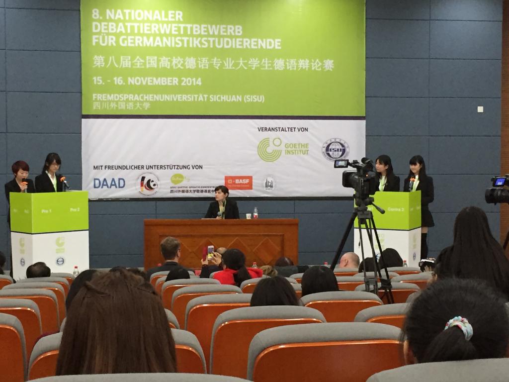 本次比赛由外指委德分委和歌德学院主办,四川外国语大学德语系承办,来自全国48所高校德语系的近百名选手最终参加了比赛。经过两天的唇枪舌剑,高清无码