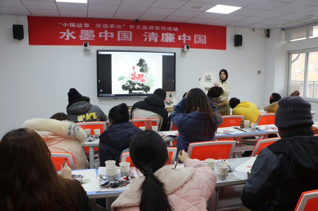 以“水墨中国 清廉中国”为主题,在李达三外语楼举办了一场寓教于乐的外文宣讲系列活动。学院党委负责人、学生工作兼纪委负责人以及中外学生30余人参加了此次活动。