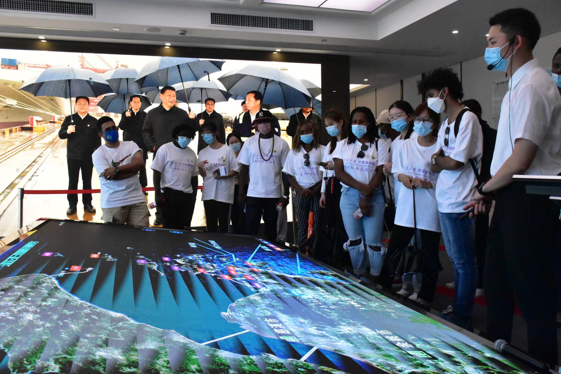 2020年3月,习近平总书记将宁波舟山港作为浙江考察调研之行的第一站。实践团成员们也正是沿着习总书记2020年考察时的足迹参观学习调研。在工作人员的着重介绍和实践团成员的翻译解读下,留学生们深刻领会着习总书记的“硬核”嘱托以及宁波舟山港打造世界一流强港的决心。