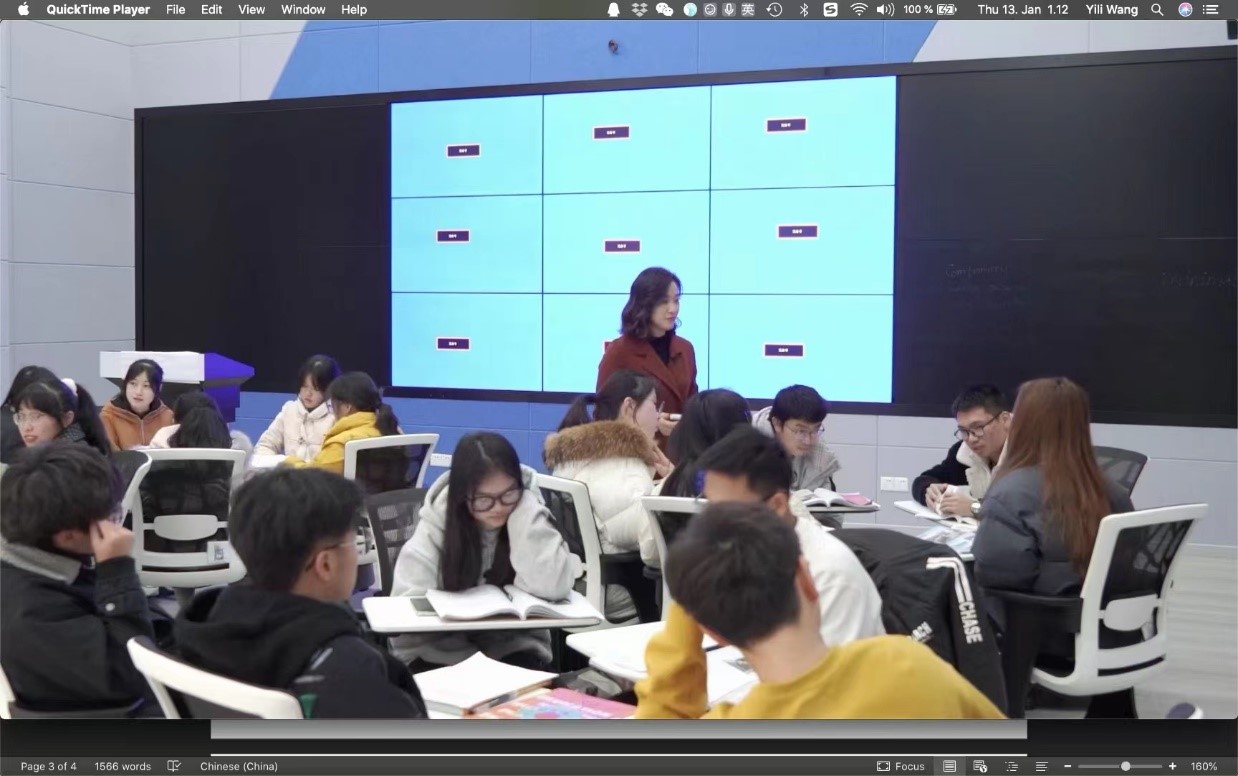 图为王雅刚老师代表的“综合英语1”课程课堂展示