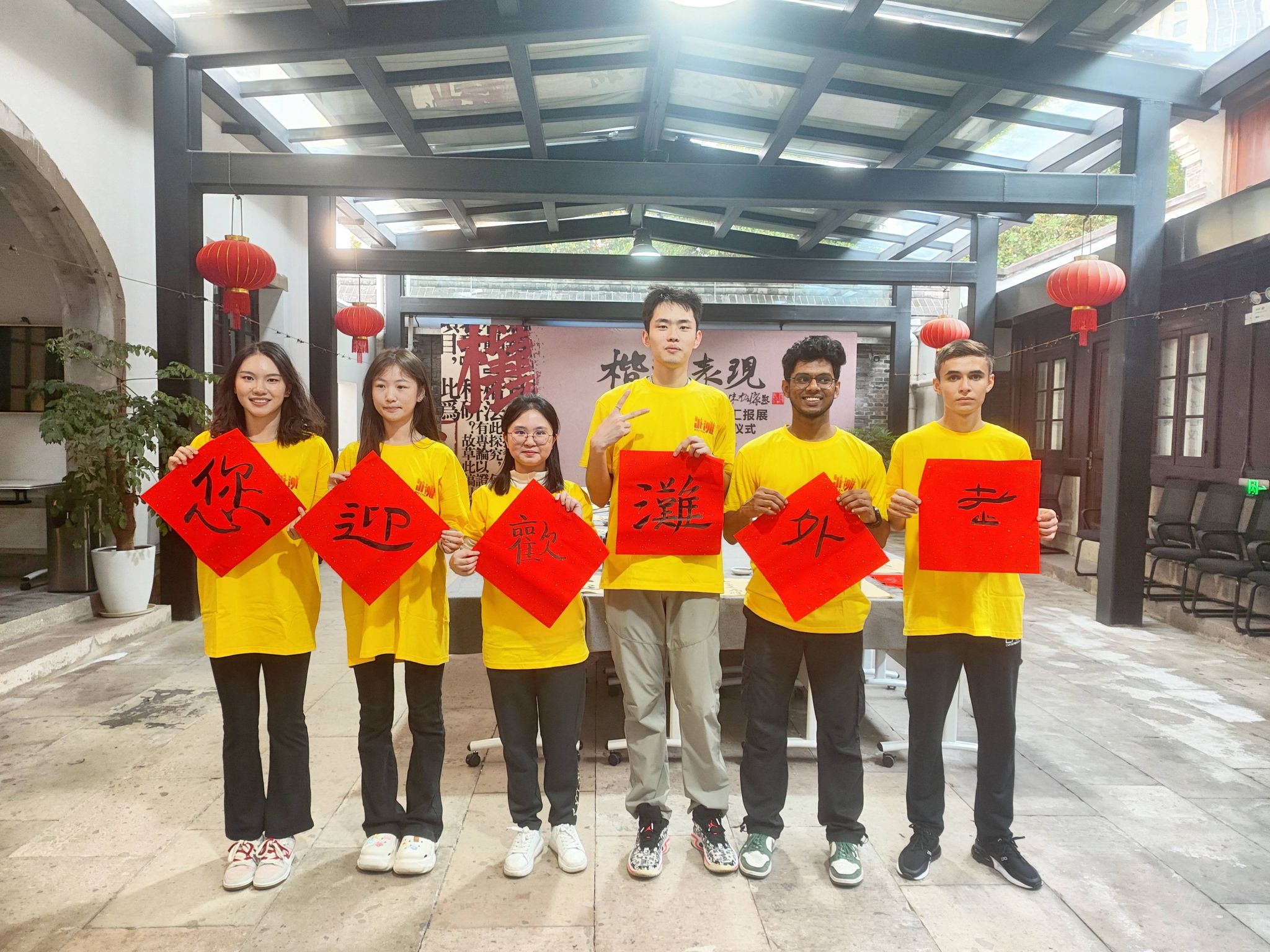 在随后开展的趣味定向赛上,11名外文宣讲团成员与外籍大学生组队,根据任务地图先后打卡了老外滩展览馆、中东欧青创中心、陈振濂学馆等点位,完成了制作汤圆、学唱甬剧、学习书法等文化体验游戏。在体验中国传统文化的同时,也拉进了与外籍大学生之间的距离。定向赛结束后,中外大学生纷纷合影留念。