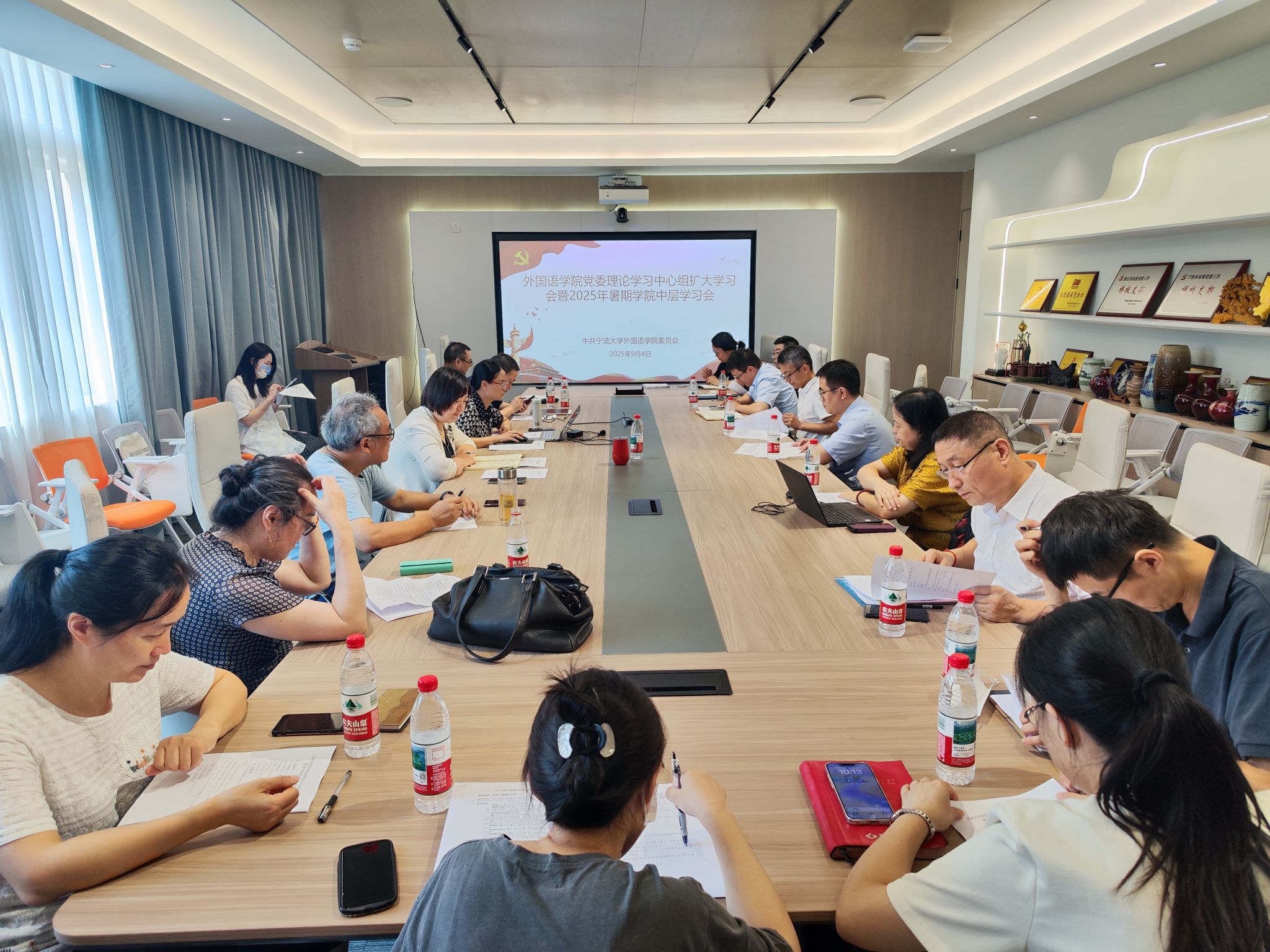 9月4日上午,外国语学院党委召开理论学习中心组扩大学习会暨2025暑期学院中层学习会,学院党委书记翁华星主持会议,党政领导班子成员、各系部办主任、教工党支部书记、各专业负责人参加学习。
