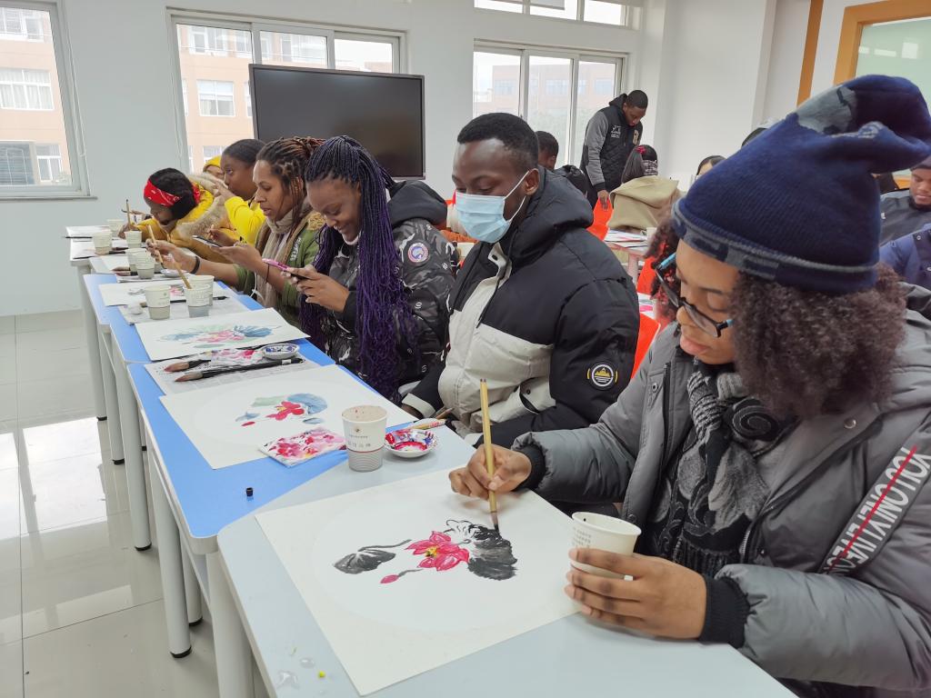 一位来自牙买加的留学生不太会使用毛笔,但在老师的帮助下也成功画出了莲花,这让她很感动;另一位津巴布韦的留学生在绘画中还充分品味了《爱莲说》所要表达的内容,感慨中国清廉文化和传统文化的博大精深。活动结束后,学院党委书记与来自卢旺达的留学生在活动结束后互相交换赠予对方现场绘画的作品。