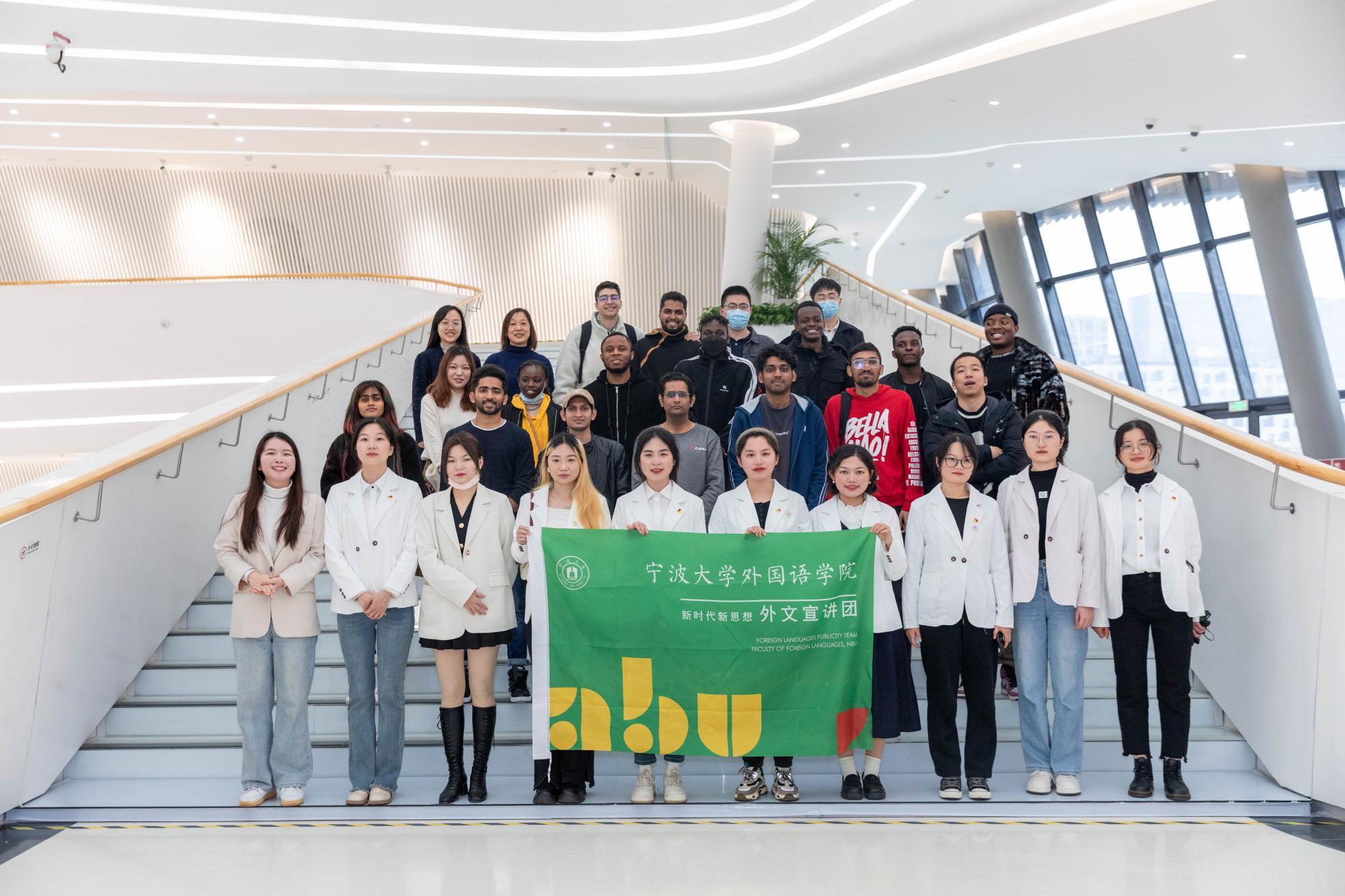 在全国掀起学习“党的二十大精神”热潮之际,宁波大学外国语学院外文宣讲团迎来了一批特别的听众,他们是来自印度、巴基斯坦、津巴布韦等国的在甬留学生。3月23日下午,四十余名中外大学生一同走进宁波城市展览馆,沉浸式了解宁波城市发展的过去、现在和未来,深入感悟中国式现代化的理念。