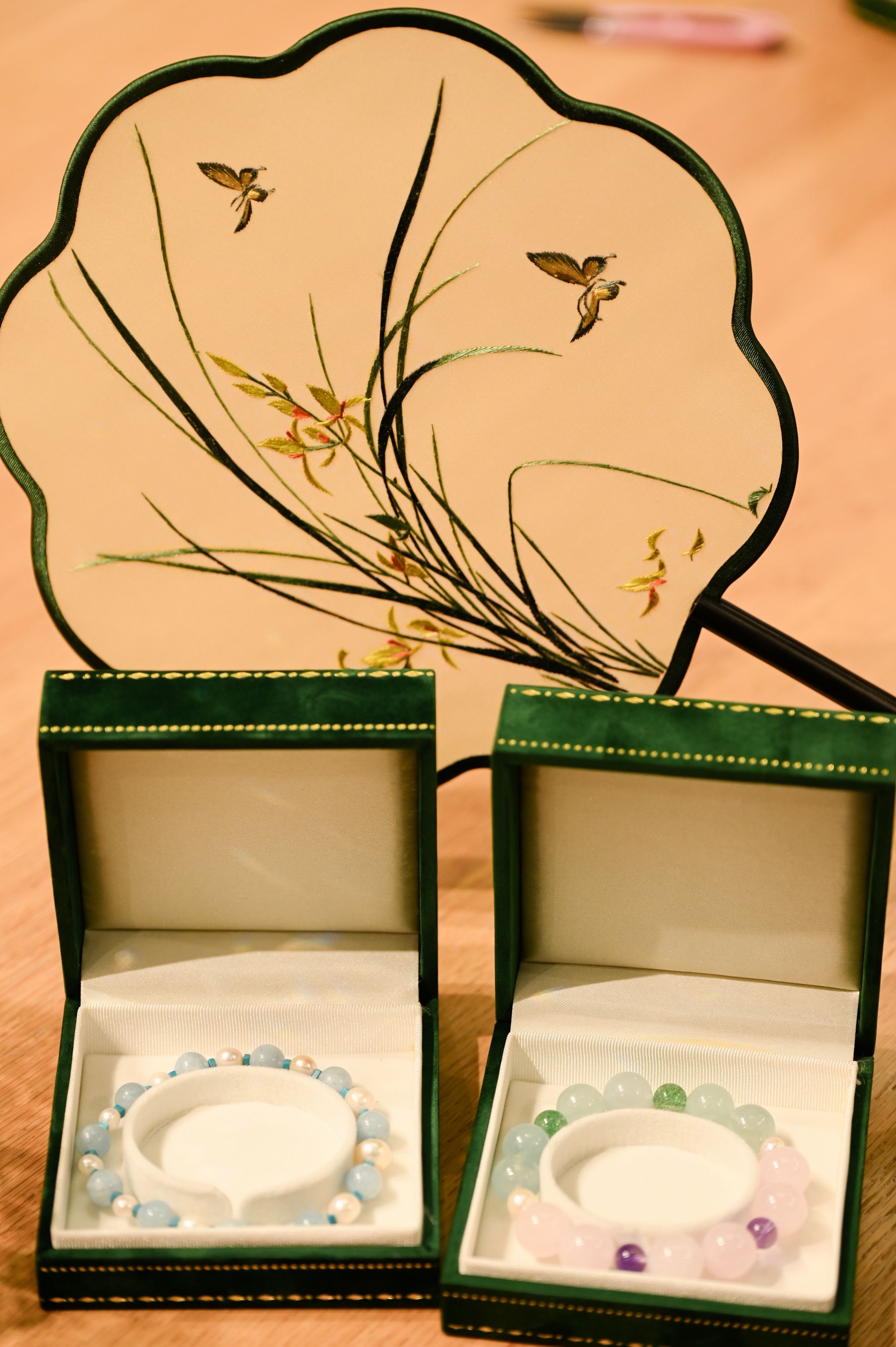 最后,工作人员为老师们准备了各式各样的珍珠、串珠线及配饰。老师们充分发挥创意,精心挑选珍珠和配饰,亲手串起属于自己的珍珠手串。大家一边专注于手中的创作,一边交流心得,欢声笑语回荡在活动现场。
