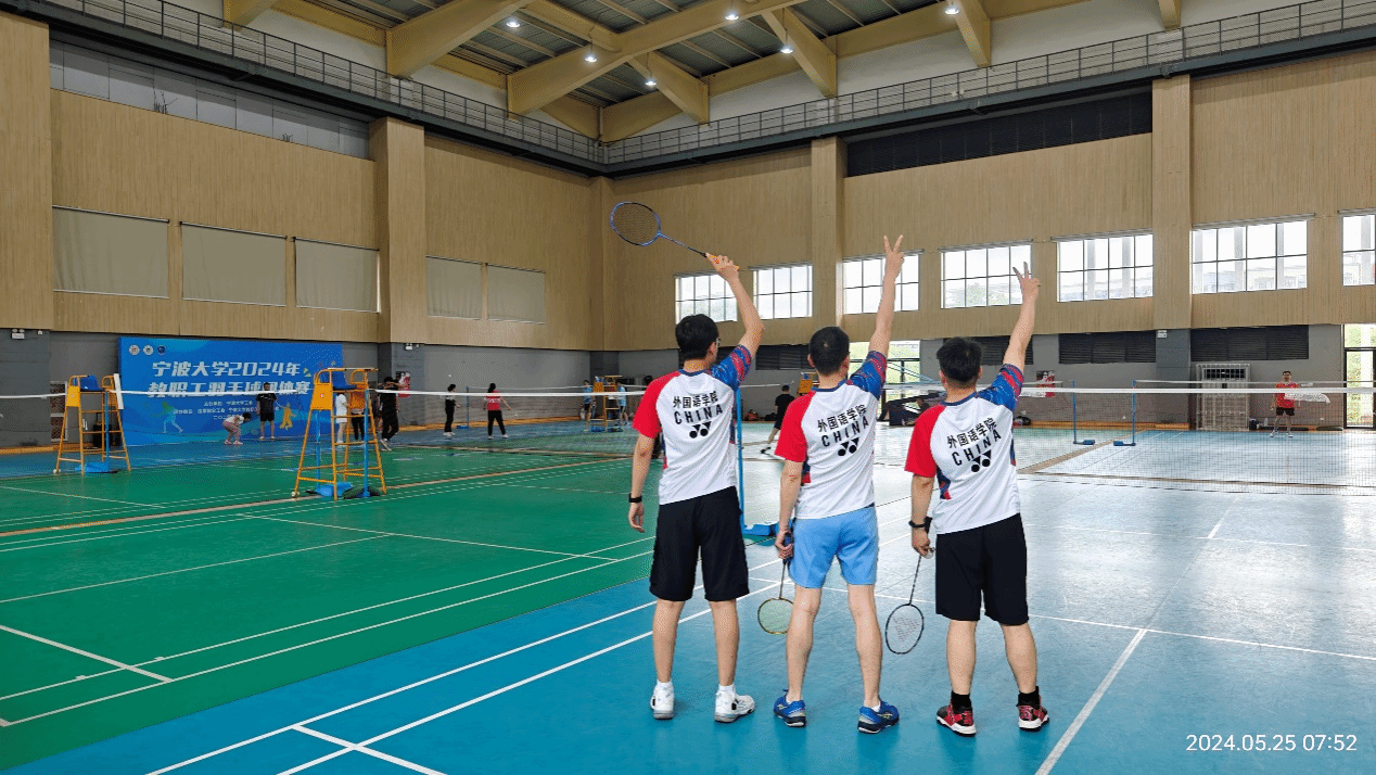 5月25日,外国语学院羽毛球代表队出征2024年宁波大学教职工羽毛球团体赛。在激烈角逐中,我院代表队展现出了团结和谐、锐意进取、奋勇争先的精神风貌。