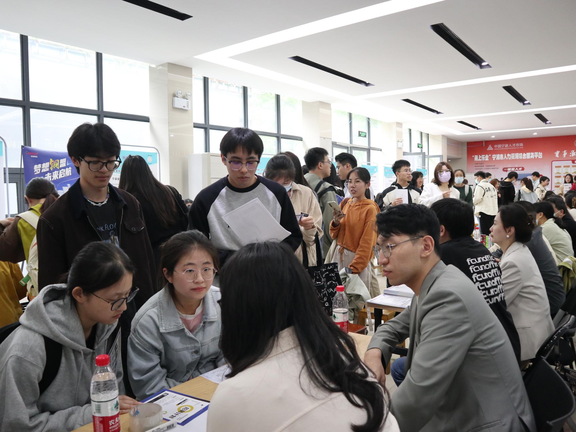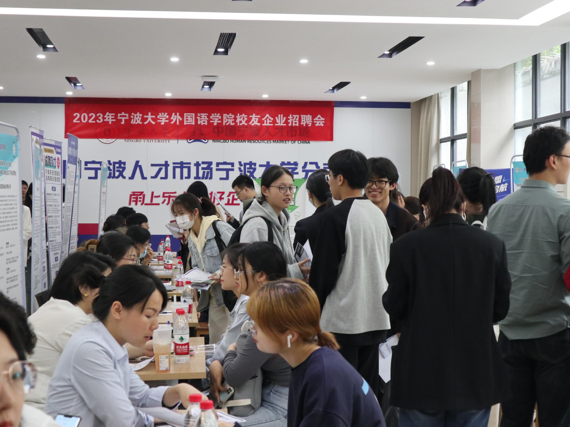 5月24日下午,外国语学院校友企业招聘会暨宁波大学外语外贸类行业就业实习专场招聘会在宁波大学就业市场举行。此次招聘会共吸引了包括外国语学院校友企业在内的32家优质企业参会,提供了外贸业务员、跨境电商运营员、海外客服、外派管培生、人力资源师、国际商务师等近百个招聘岗位。学院党委副书记胡佳、就业辅导员参加本次活动,外国语学院及其他各学院相关专业300余名本硕学生参加现场招聘。