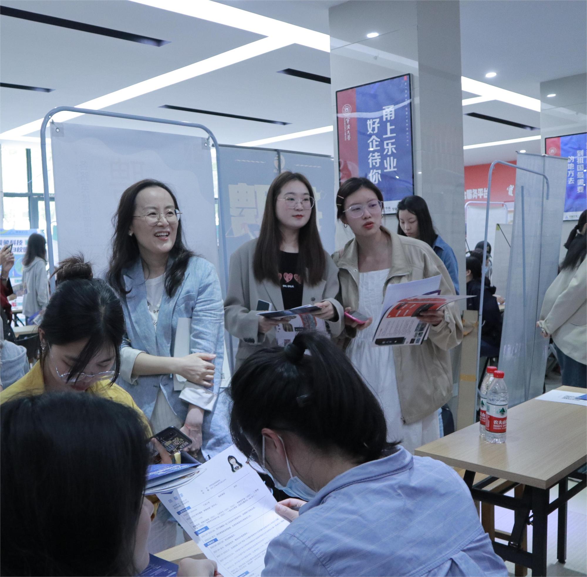 招聘会场人潮涌动、气氛热烈。各用人单位积极宣传推介,向到场同学抛出橄榄枝,同学们也踌躇满志,主动就岗位职责、工作内容、薪资待遇等细节问题向招聘单位咨询,并向心仪企业投递简历,展现自信风采。此外,学院党委副书记胡佳与各企业、参会校友亲切交谈,了解行业发展态势,并主动关心学院毕业生的求职情况,为他们提供现场指导,帮助他们更好做出理性选择。
