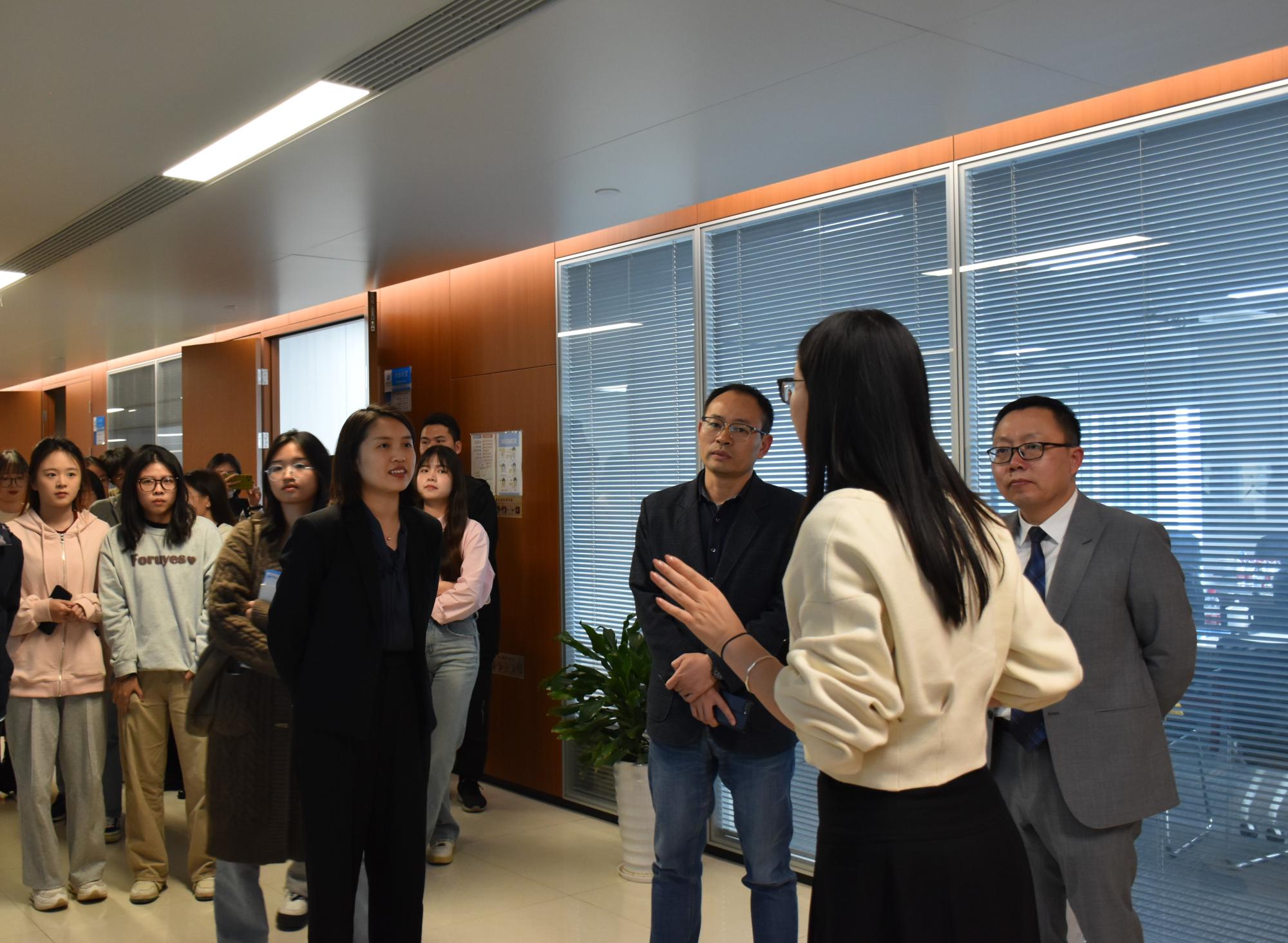 问答交流环节中,同学们积极提问,内容涉及行业发展、求职技能提升、个人发展规划等多方面,现场气氛活跃。张晨表示企业在招聘人才时更加注重学生的综合素养,看重学生学习新知识的能力,并建议学生们针对岗位投递个性化简历以取得更好的效果。干活满满的分享与解答让同学们受益匪浅,不少同学更是当场投递了简历。座谈结束后,企业代表带领师生参观公司办公区、战略人才室、餐厅、以及休闲场地等区域,深入交流公司企业文化和发展愿景,同学们收获颇丰。