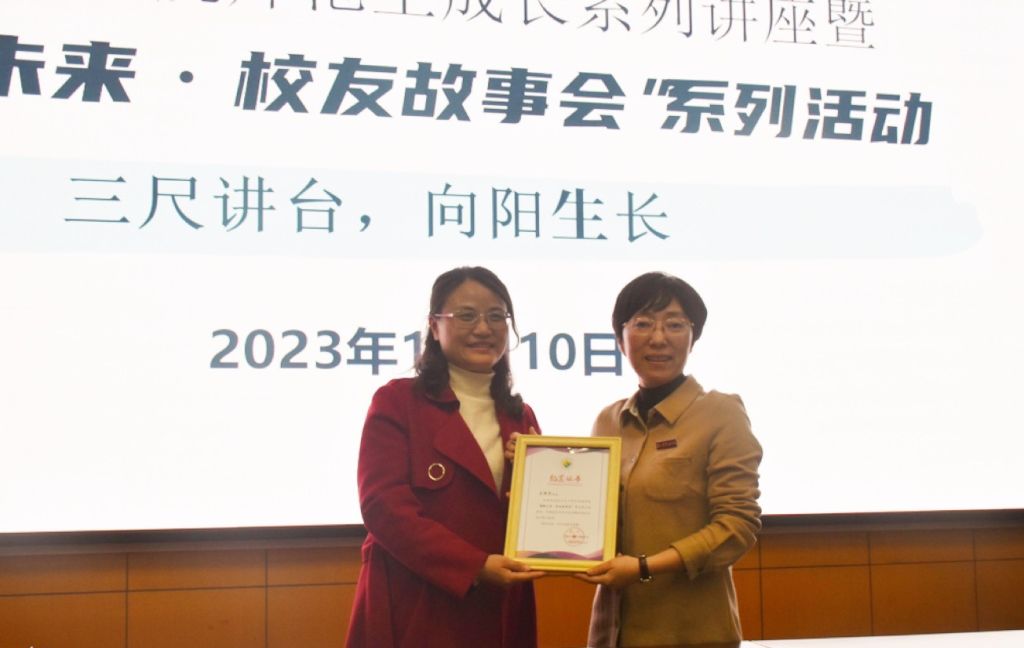 11月10日,外国语学院师范生成长系列讲座暨“领航未来·校友故事会”系列活动第五期——“三尺讲台,向阳生长”在李达三外语楼218教室精彩开讲。