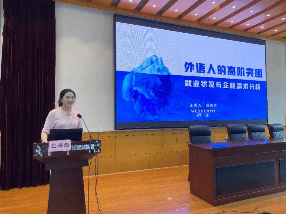 企业代表从市场需求对学院外语人才培养提出了建议。浙江威迅电子科技集团人力资源经理应海君做了题为“外语专业人才的就业状况与企业需求分析”的专题报告,中德(太仓)合作区副主任张罗银结合国际化企业案例,作了题为外语专业人才的能力结构与企业需求分析。