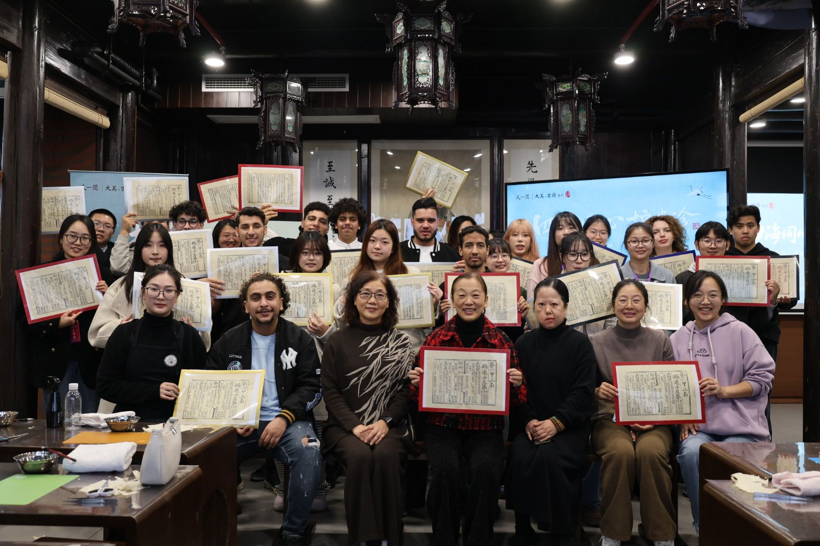 12月10日,外国语学院外文宣讲团组织在甬留学生共30余人前往天一阁,开展“翰墨甬城 修典中国”外文宣讲活动。通过实地参观馆藏文物与沉浸式古籍修复体验,全方位感受中华传统文化的深厚底蕴与独特魅力。