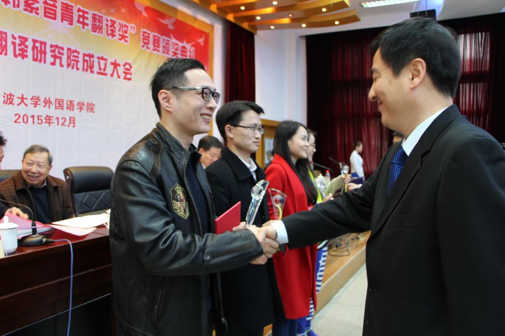 中国外文局局长、中国翻译研究院院长、中国翻译协会会长周明伟,宁波大学党委书记郭华巍,中国外文局国际合作部主任、中国译协常务副秘书长姜永刚,《中国翻译》杂志副主编、中国翻译协会翻译理论与翻译教学委员会副主任兼秘书长杨平,宁波市外事办公室副主任陈国苗,国务院学位委员会“外国语言文学”学科评议组成员、广东外语外贸大学教授、博士生导师,珠江学者特聘教授黄忠廉,中国资深翻译理论家方梦之,新加坡南洋理工大学教授谭慧敏等出席颁奖典礼。本届大赛评审委员会的部分专家、学者、大赛获奖选手和相关代表参加典礼。典礼由宁波大学党委委员、人文社科处处长张真柱教授主持。