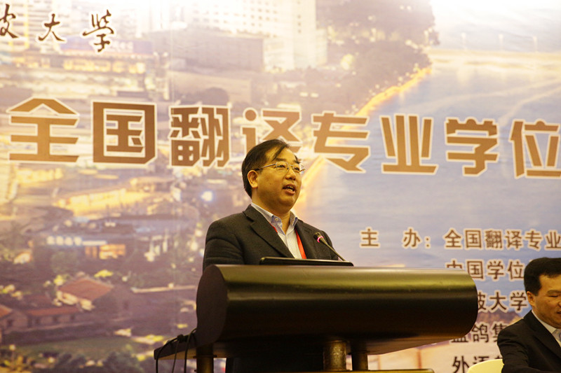 21日上午9点,会议正式开始。宁波大学校长沈满洪首先致辞,简要介绍了宁波大学概况以及学校的最新发展动态,感谢与会专家一直以来对宁波大学发展的支持与关注。接着宁波大学外国语学院院长屠国元教授致辞,表达了对专家的欢迎与感谢,介绍了宁波大学外国语学院在学科建设和专业发展方面所取得的成绩,期待与会专家能够一如既往地关心、推助快速发展中的宁波大学外国语学院。欢迎仪式之后,全国翻译专业学位研究生教育指导委员会副主任委员、广东外语外贸大学校长仲伟合教授致开幕辞。开幕式之后是主旨发言,首先进行发言的是来自国务院学位办专业学位处处长唐继卫。他介绍了专业学位教育综合改革的理念与设想,专业学位博士研究生的人才培养等问题。随后,全国翻译专业学位研究生教育指导委员会副主任委员、广东外语外贸大学校长仲伟合教授作了题为“从专项评估看翻译硕士专业学位教育的问题”。他介绍了全国翻译专业硕士专项评估的实施细则与操作过程,分析了评估结果,总结了问题,提出未来发展建议。他认为翻译专业硕士教育在专职教师实践能力方面,兼职教师队伍建设方面,课程建设水平,学生相关专业知识,实践教学基地建设力度等方面仍有非常大的整改和提升空间。他提出要以国家发展战略为办学导向,要以职业需求为课程导向,要以实践能力为培养重点,要以师资队伍建设为关键,要以质量保障体系为抓手五点建议。第三位主旨发言的是教育部高等学校外语专业教学指导委员会委员、对外经济贸易大学英语学院院长王立非教授。他从中国企业走出去的语言服务数据解读、SWOT分析、MTI培养思考三个方面分析了语言服务对MTI人才培养的启示与意义。之后,中译语通科技有限公司的总经理于洋、蓝鸽集团的产品总监秦衡分别从语言大数据和云网络的视角对翻译人才需求的角度进行了发言。
