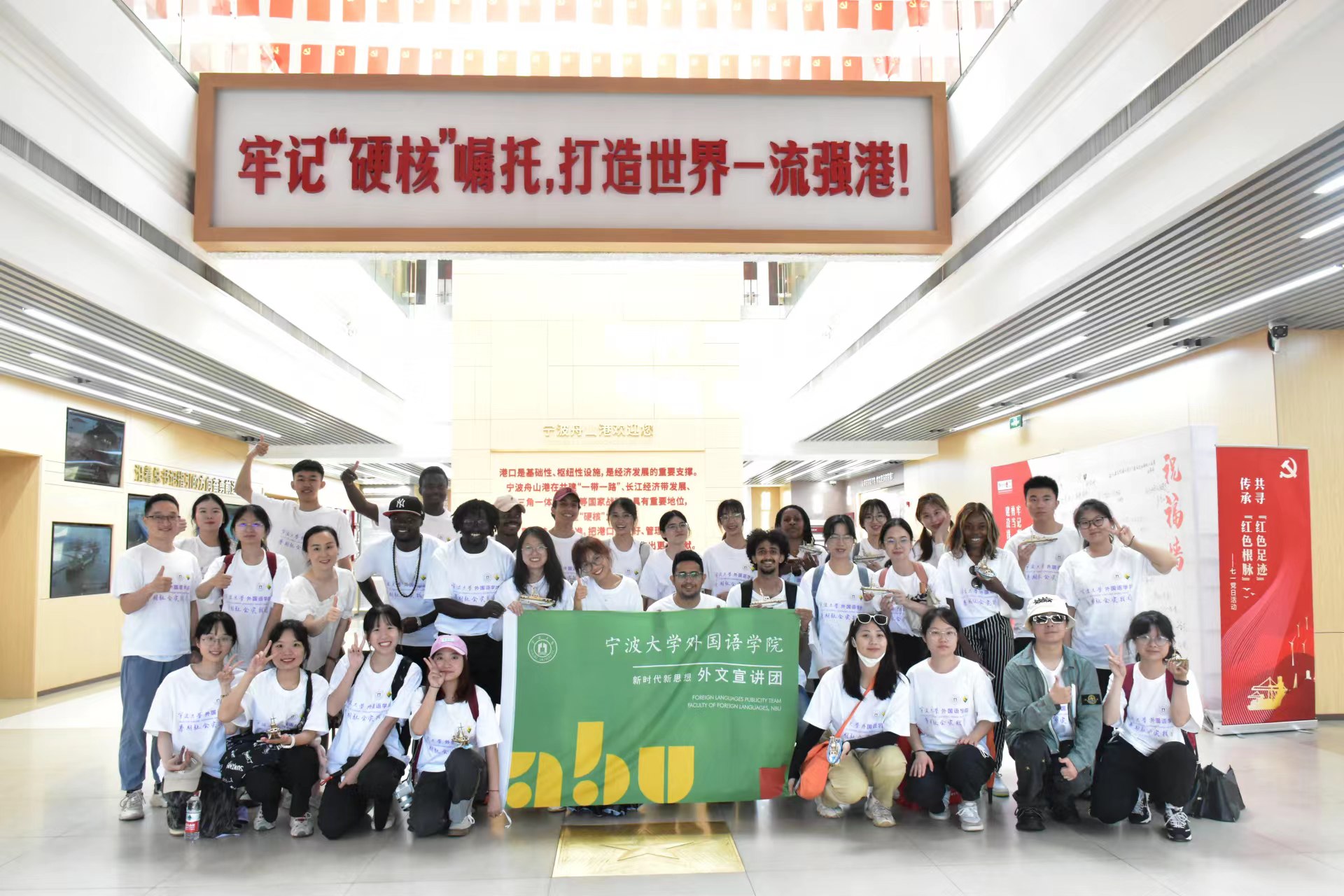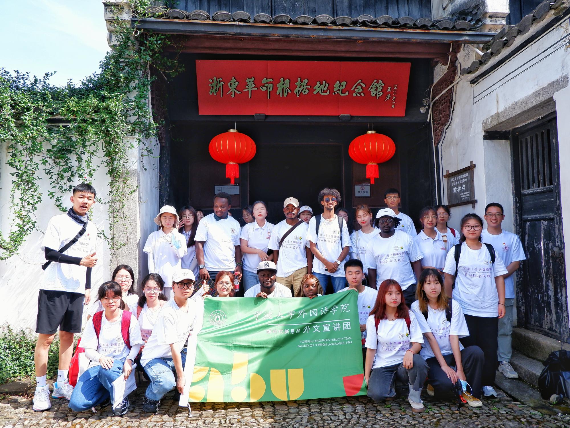 外文宣讲团响应共青团中央、全国学联的号召,组建中外大学生社会实践团,以建党百年为契机,以“追寻红色足迹,宣讲党史故事”为主题,以中国大地为课堂,走访了10余处宁波红色基地,开展了20余次宣讲活动,编印了多语种红色旅游手册,让留学生充分感悟民族精神、体验中华文化、聆听改革故事,加深了对中国道路、制度、文化、价值的理解和认同。而今年暑假,这支中外大学生暑期社会实践团队走进了宁波鄞州东吴镇、宁波舟山港、余姚横坎头村等地,与来自贝宁、刚果(金)、卢旺达、巴布亚新几内亚、津巴布韦、喀麦隆、摩洛哥、也门等国的十余名留学生一起,围绕乡村振兴实践、共同富裕路径、发展成就观察等主题,多视角开展实践与宣讲活动,让留学生在沉浸式体验中深入了解中国的国情社情民情,将自己眼中真实的中国带到世界各地。