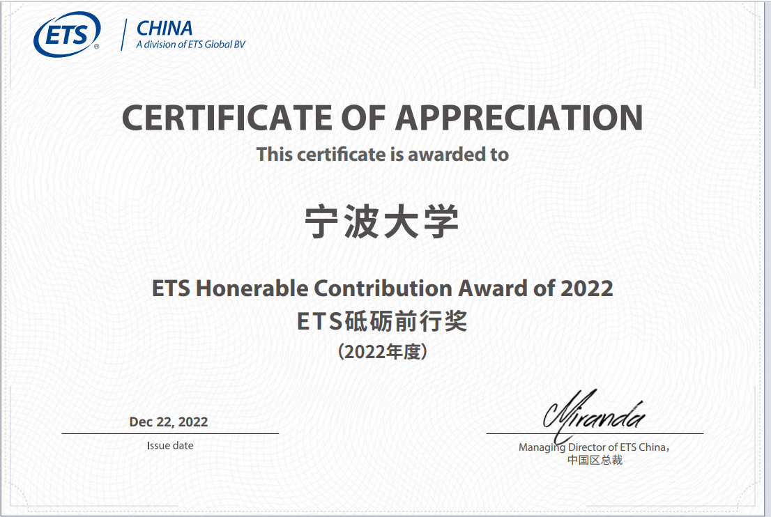 这份荣誉来之不易,是美国教育考试服务中心对我们在非常时期组考托福、GRE考试工作的最大肯定和褒奖,是高清无码