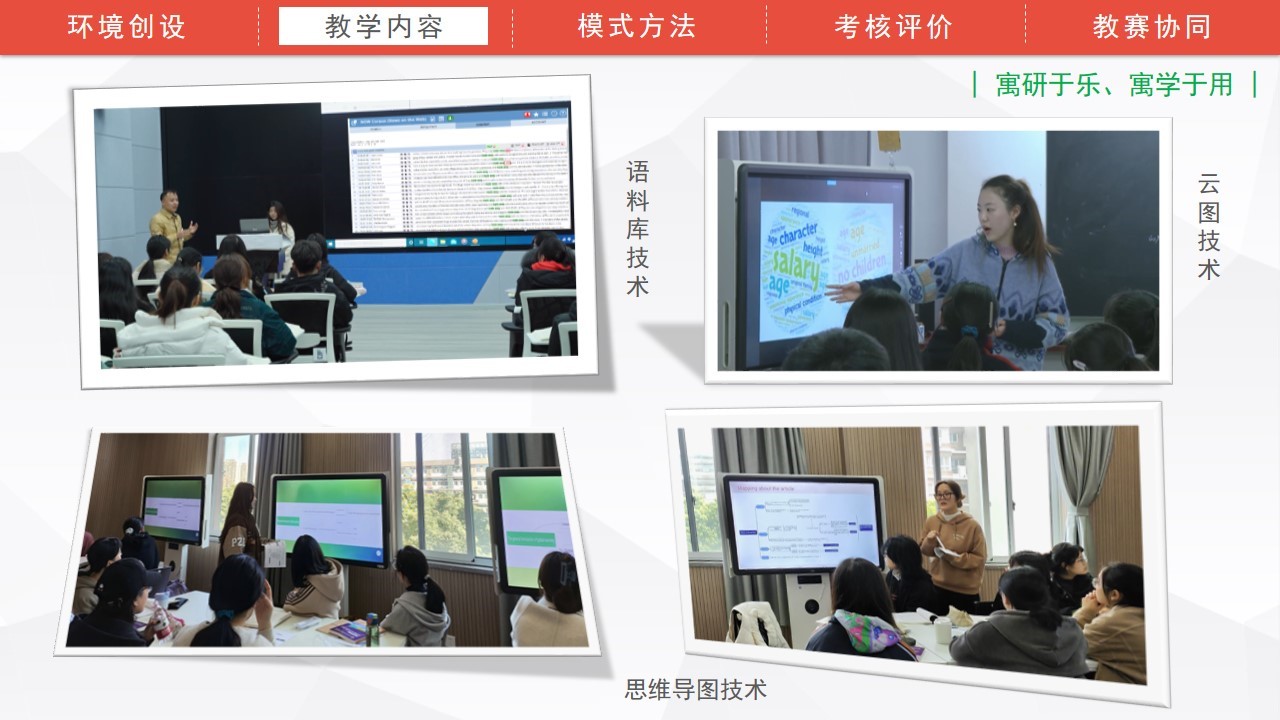 英语系教师王雅刚所代表的“综合英语1”课程组团队荣获新文科副高组一等奖。该课程针对教材内容陈旧、学生说写技能转化率低、自主学习能力不足等基本学情,团队采用混合式教学手段把现代信息技术融入“综合英语1”课程的升级改造,推动“新文科”知识的增量建设。通过课程创新,团队在学科竞赛、教学比武和教研项目上均取得佳绩,也收获了同行好评。