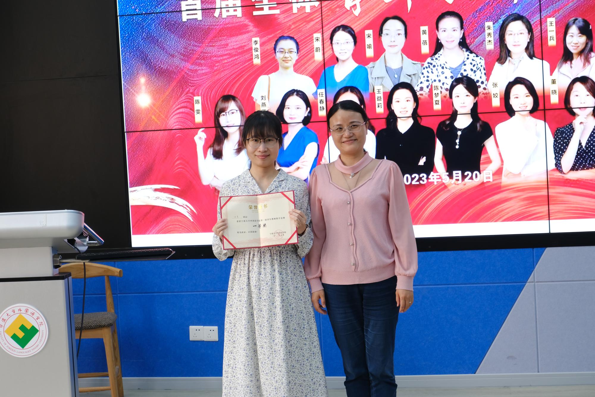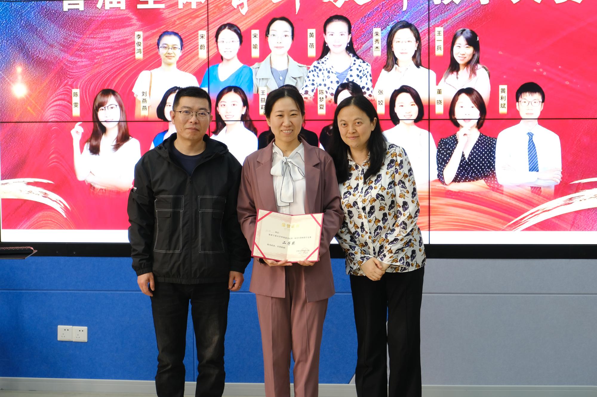 经过3个多小时的激烈角逐,根据现场评委打分排名,最终陈雯老师荣获比赛一等奖,朱秀杰老师、王一兵老师荣获比赛二等奖,宋蔚老师、黄利斌老师、任春静老师、王益莉老师、宋喻老师荣获比赛三等奖。外国语学院党委书记翁华星、党委委员刘路平、党委委员蔡玳燕与学院督导组组长林渭芳为获奖老师颁发了荣誉证书。