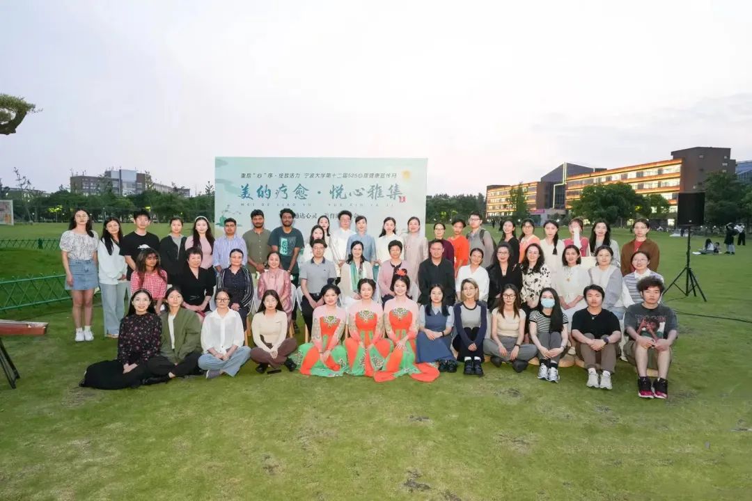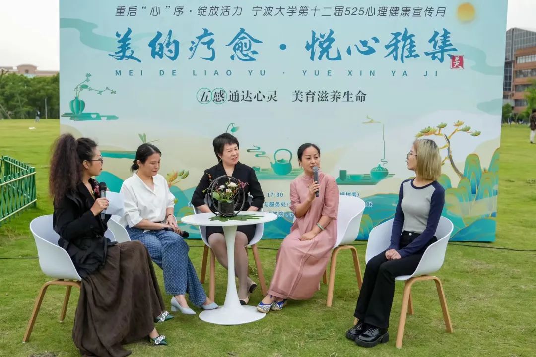 5月25日是全国大学生心理健康日,傍晚夕照下的大草坪上,千年橄榄树旁,举办了一场融传统美学、“五感”体验与身心疗愈于一体的心理健康日活动——美的疗愈· 悦心雅集。此次雅集活动由宁波大学学生发展与服务处学生指导服务中心、宁波大学妇联共同主办,外国语学院、心理健康指导中心承办。