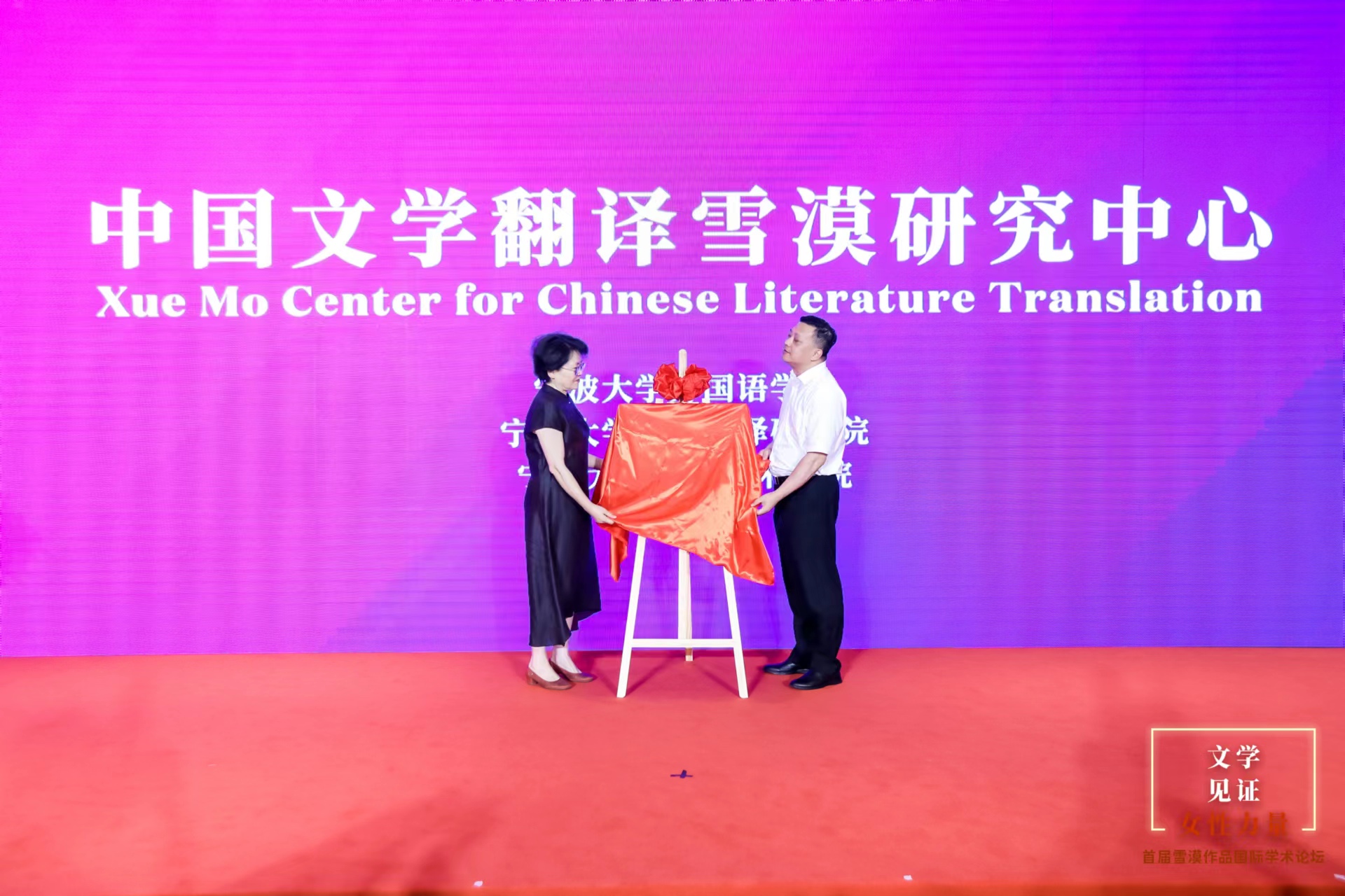 2023年6月15日,“文学见证女性力量——首届雪漠作品国际学术论坛”在北京国家会议中心隆重召开。中国出版协会理事长、原国家新闻出版总署副署长邬书林出席并致辞。期间,中国外文局翻译院院长黄玉龙、中国出版协会副秘书长刘丽霞为我院“中国文学翻译雪漠研究中心”(以下简称“中心”)揭牌,并与国家一级作家、甘肃省作家协会副主席雪漠、甘肃文化翻译中心主任姜秋霞一起为中心剪彩。我院多位教师以中心研究员身份出席本届论坛,并发表主题演讲。研讨会由人民文学出版社资深编审陈彦瑾主持。