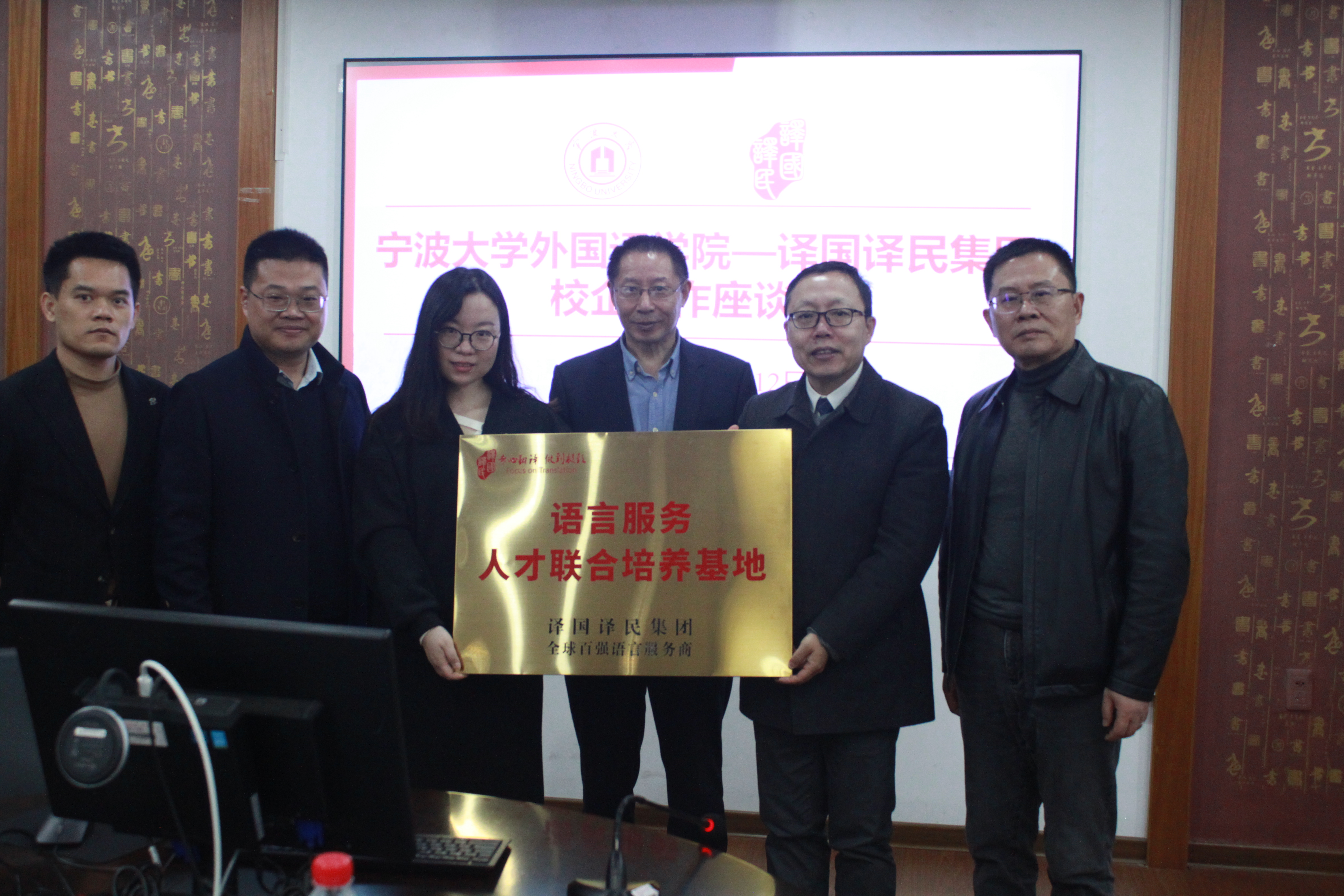 12月12日,宁波大学外国语学院与译国译民集团在李达三外语楼举行校企合作座谈会并签署合作协议,建立战略合作型校企合作关系。译国译民集团董事长林世宋、高校事业部总经理郑莺等主要领导,宁波大学外国语学院特聘院长屠国元、副院长张陟及MTI教育中心负责人出席了校企合作签约以及授牌仪式。