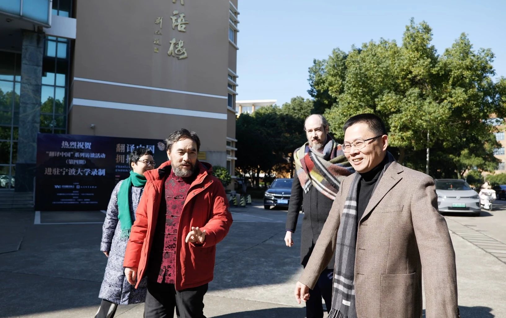 12月22日,“翻译中国·拥抱世界”系列高端访谈活动第四期进驻宁波大学录制。该录制活动由中国翻译协会文学艺术翻译委员会、宁波大学外国语学院承办,宁波市归国华侨联合会、宁波市天一阁博物馆、宁波大学来华留学教育发展战略研究中心、宁波大学中国文学翻译雪漠研究中心支持拍摄,主要聚焦被誉为“大漠歌手”的作家雪漠10年的海外译介传播之路。人民文学出版社编审陈彦瑾莅临宁波大学参加录制。主办方中国外文局翻译院院长黄玉龙、中国外文局翻译院翻译行业工作部副主任杜楠、人民文学出版社外国文学编辑室副主任陈旻等领导来甬指导项目拍摄。