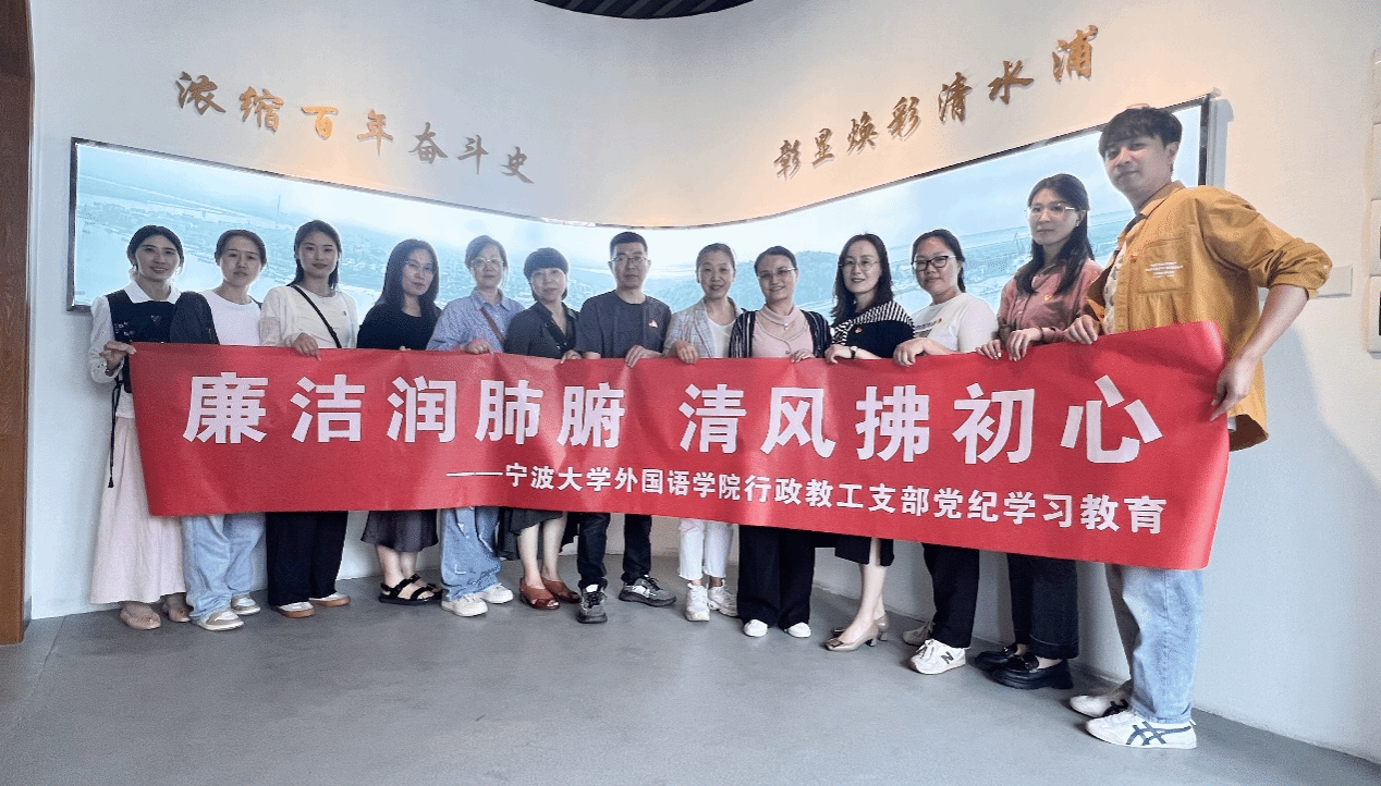 为深化党纪学习教育,提升学院行政教工支部党员的廉洁自律意识,营造风清气正的清廉文化氛围,近日,我院行政教工支部组织15余名党员赴镇海区蛟川街道农村廉政文化教育基地进行“廉洁润肺腑 清风拂初心”党纪教育。