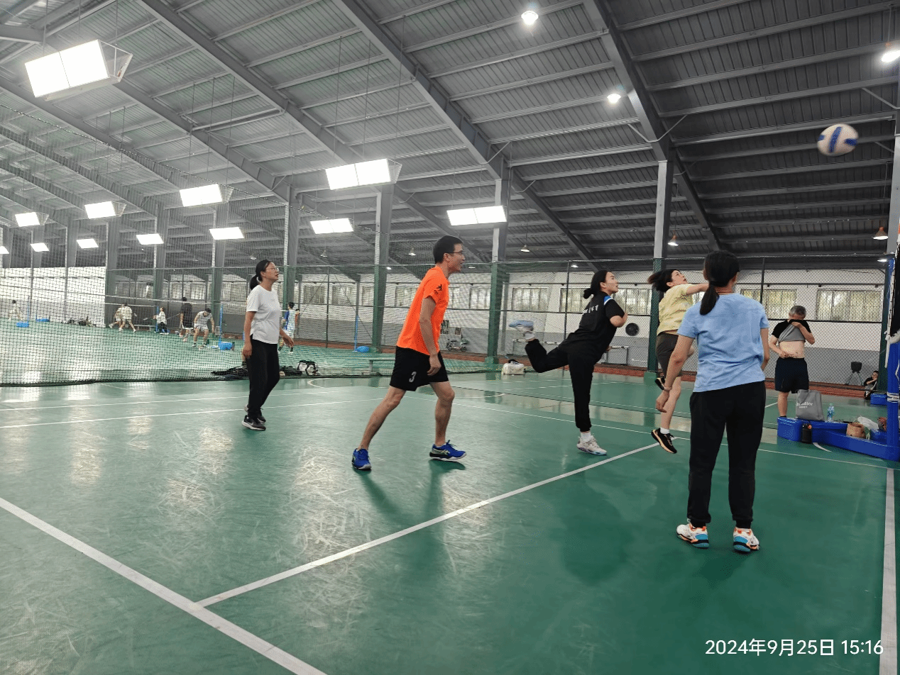 女教职工的活力与风采。气排球运动不仅增强了体质,还促进了同事间的交流与友谊。