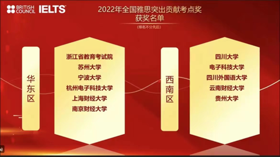 雅思纸笔考点和机考考点均获教育部教育考试列榜表彰并荣获“2022年全国雅思突出贡献考点奖”。