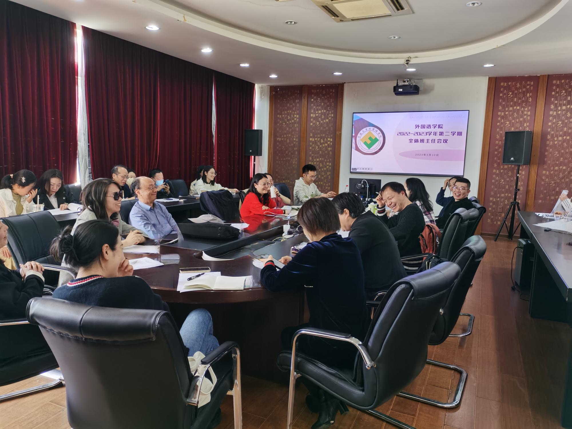 召开新学期班主任工作会议。学院党委书记翁华星、党委副书记胡佳、全体班主任以及辅导员参加会议。