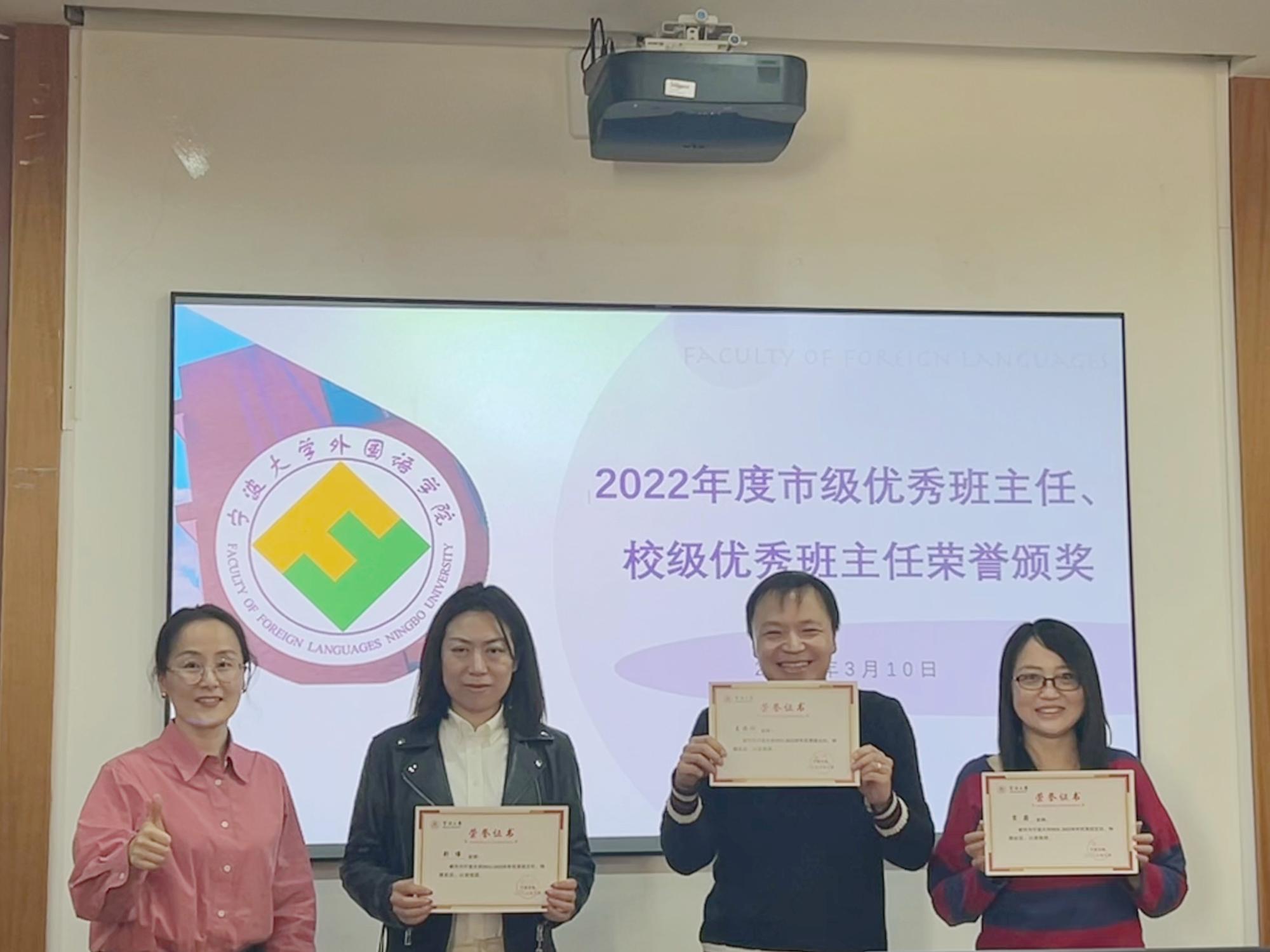 首先,院党委书记翁华星为荣获2022年度市级和校级优秀班主任荣誉的老师们颁奖,获奖班主任们结合自身工作经历发表感言。